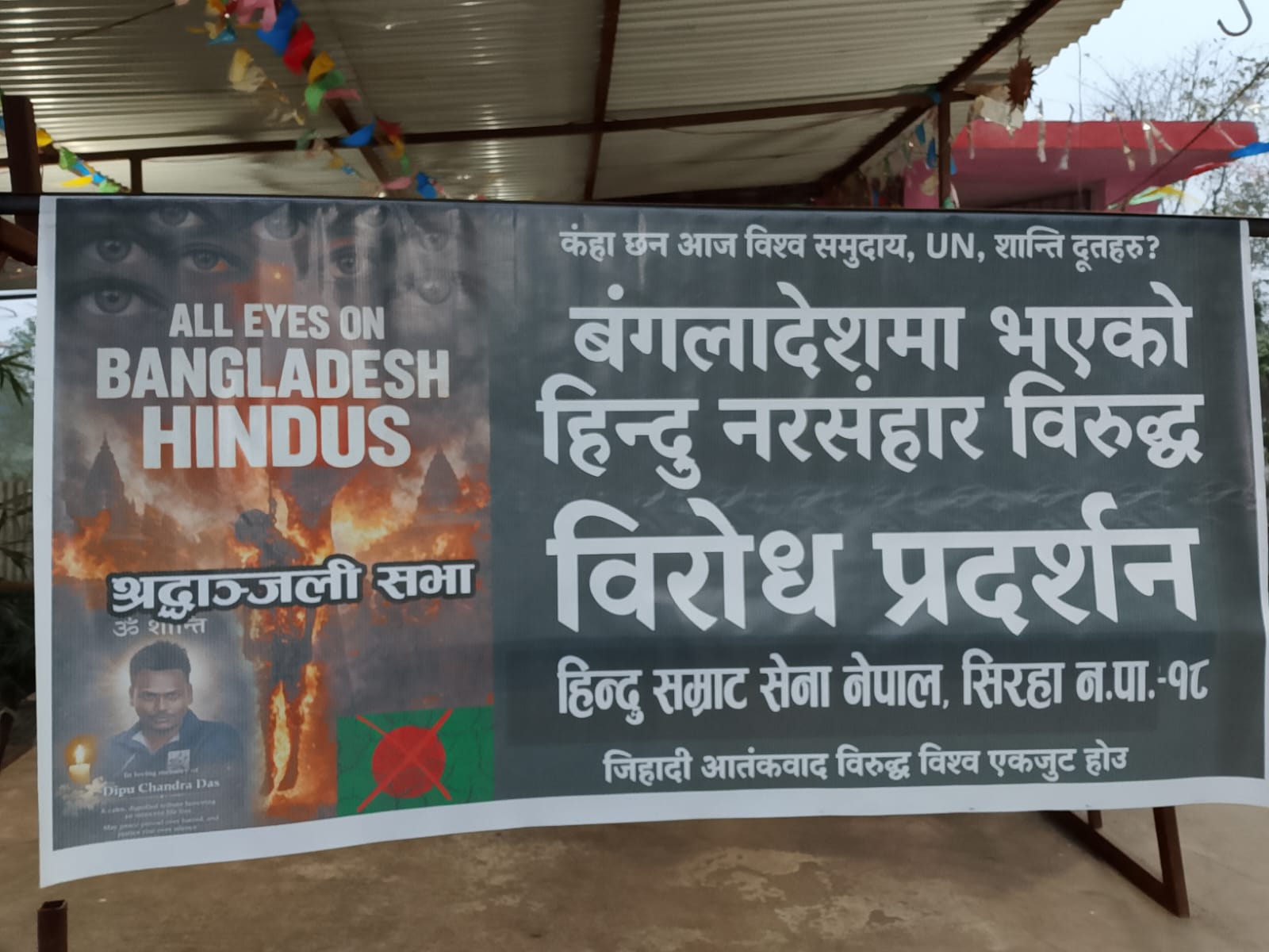 सिरहामा बंगलादेशका हिन्दूहरूमाथि भएको नरसंहारविरुद्ध विरोध प्रदर्शन