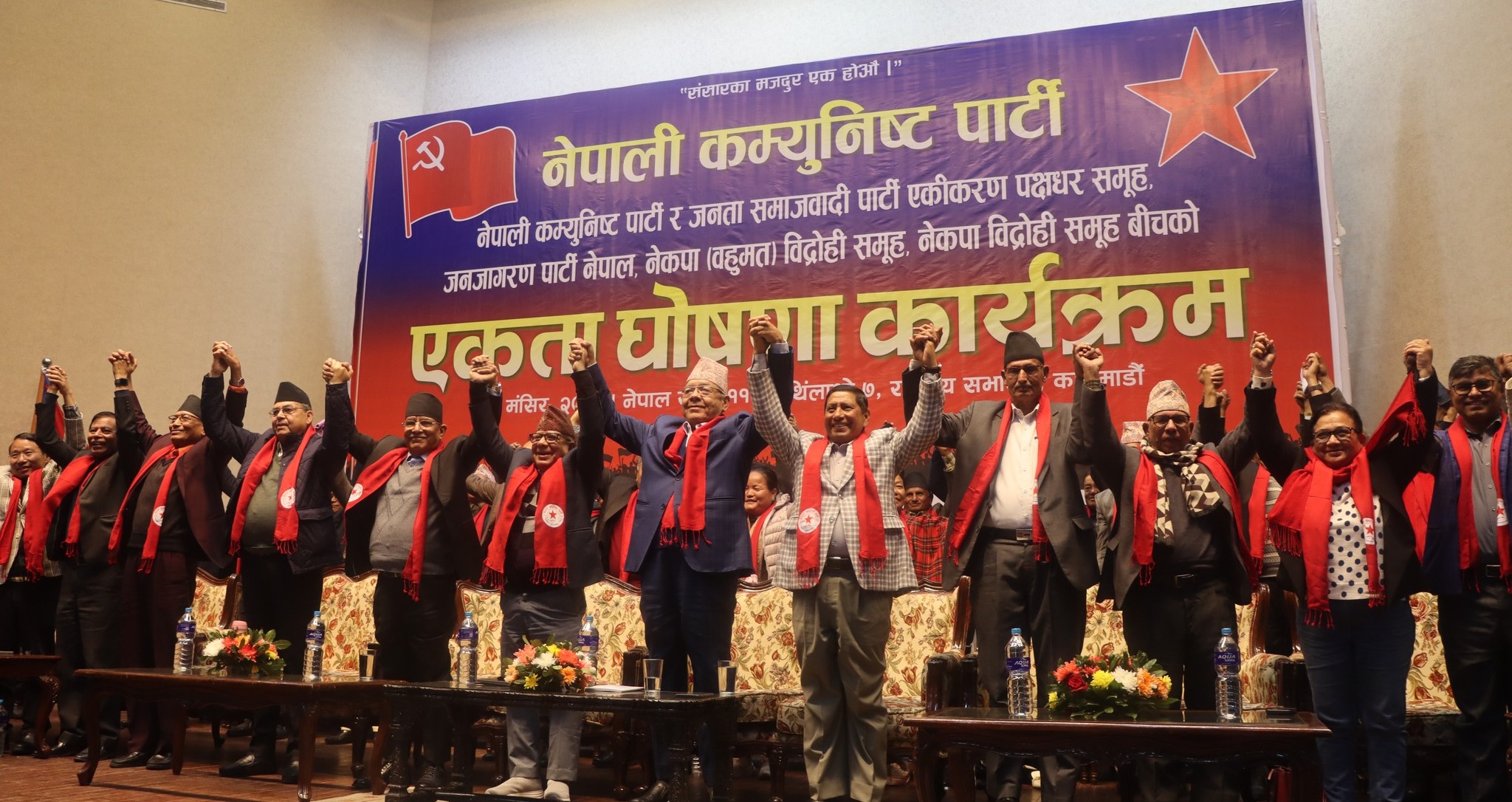कात्तिक १९ यता ६ वटा पार्टी तथा त्यसका विद्रोही समूहहरू नेपाली कम्युनिस्ट पार्टीमा समाहित भएका छन्। भीम रावल, राजेन्द्र श्रेष्ठ लगायतका नेताहरू पनि नेकपामा समाहित भएका छन्।